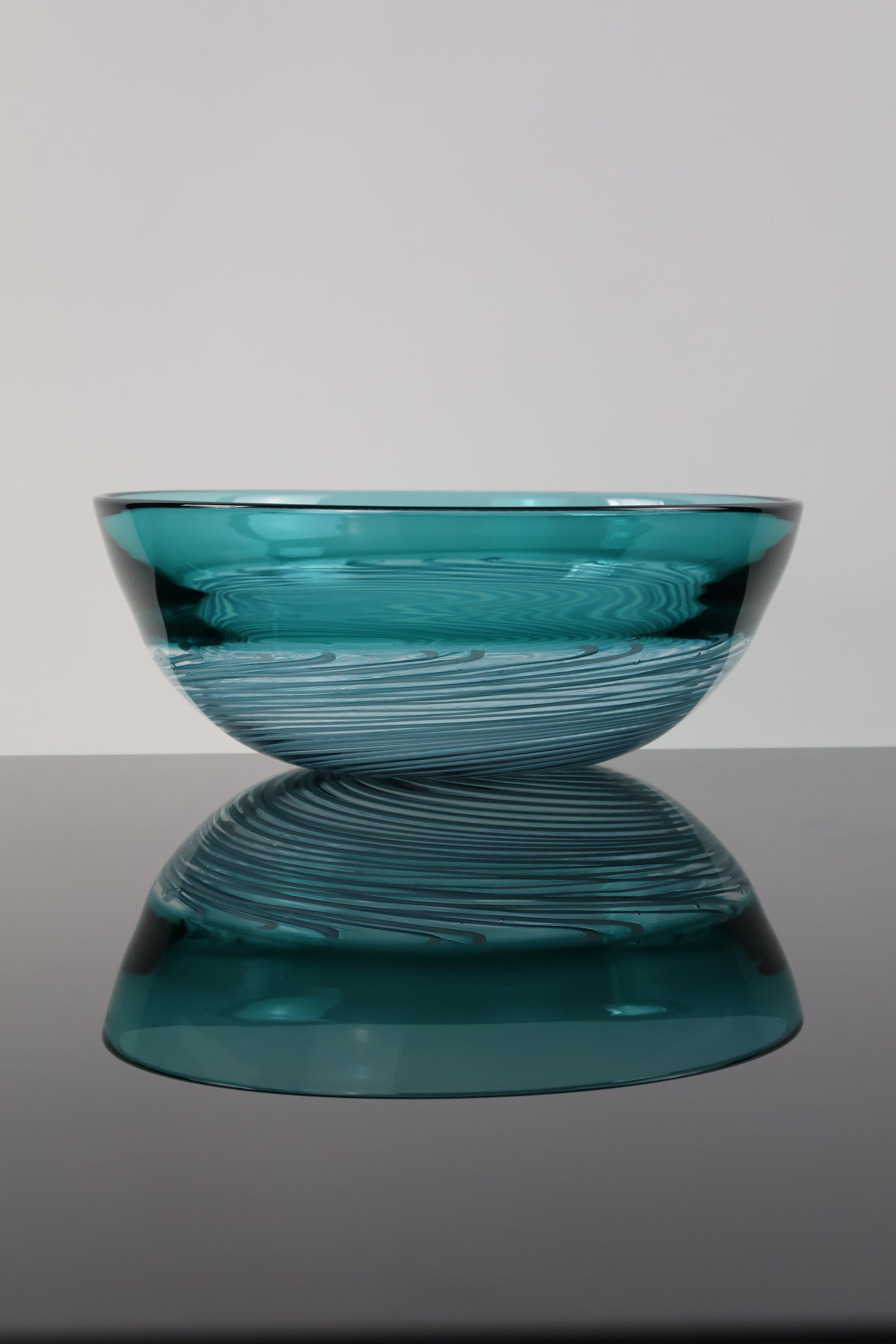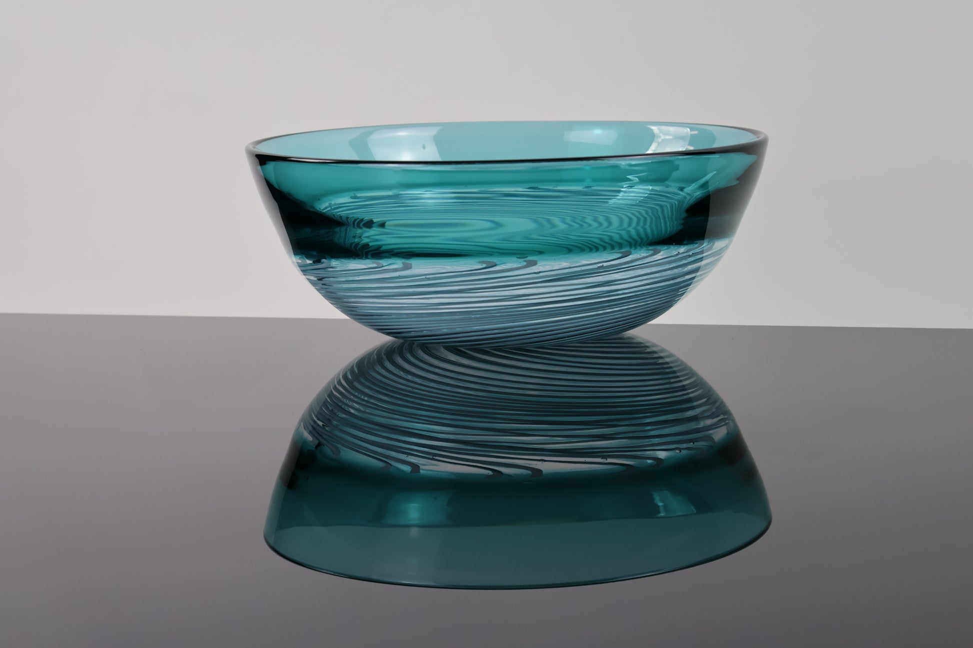 Handblown Teal and Cane Spiral Encalmo Bowl